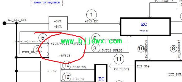 里面有维修指南 点位图,在基地上也下载了饼哥发布的电位图 此机待机的时候只有5V +3vsus要开机才发出,电路图时序上有说明