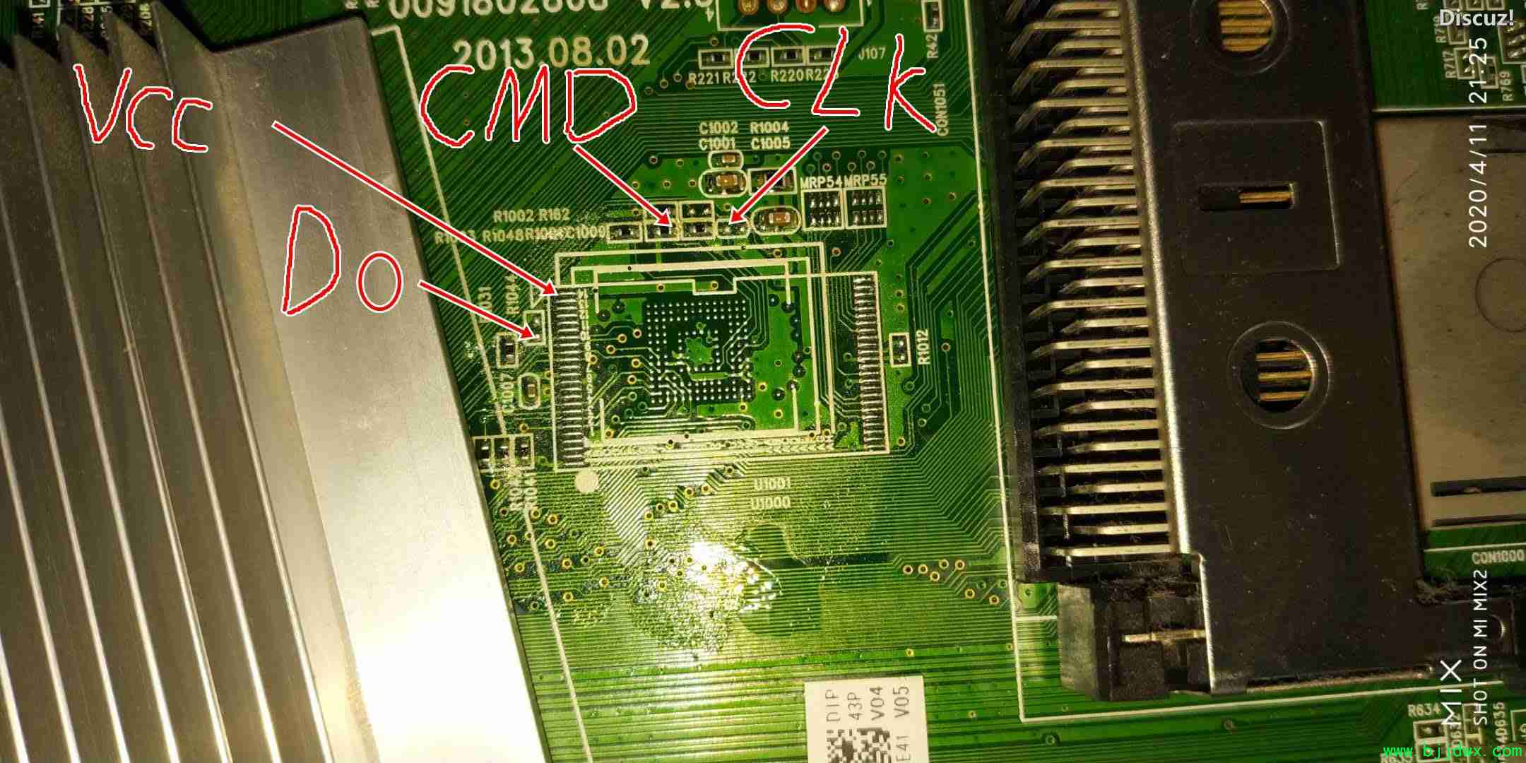 飞线图附上,因为我程序没提取出来,所以不确定我标注的对不对。随后我会附上去掉emmc的飞线图和点位图和程序。