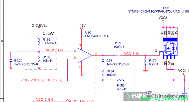 打开鑫智造,找到图纸,测的VCC15_EN电压为3.3,正常情况下是1.5V的,和桥电压一样,估计都是他接的两颗电阻出问题了,那就先换了,芯片也得换,LM324,如果不换的话还得继续烧,亲身经历过