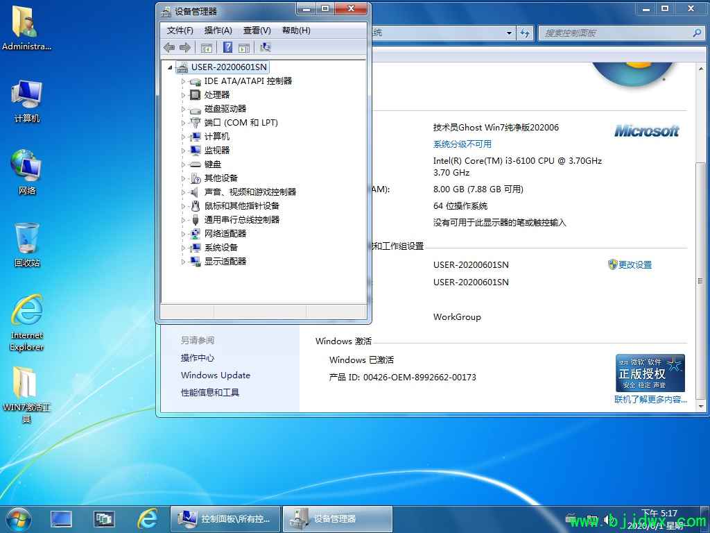 技术员 Ghost Win7 Sp1(x86/x64)旗舰版 2020 06