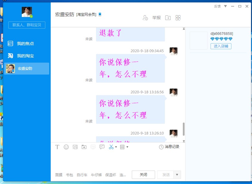 请问淘宝买的电器保质一年,3个月后就坏就找不到了吗?旺旺名宏盛安防,三个月前买过他的剃须刀,买时不太注意,买到家放了三个月后就坏了。当时说好保质一年,还放心,现在联系不回话,店铺也下架.什么都没有买了,请问没法了吗?淘宝小蜜只保正3个月内付责!