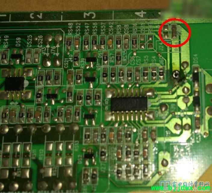 这个芯片应该需要12V供电,是通过24V经过RW31,一个比较大个的电阻,然后二极管稳压得到12V,断开RW31发现有电压,那应该是电阻后面的问题,一路追查过来,只发现了一个很小的贴片电容。
