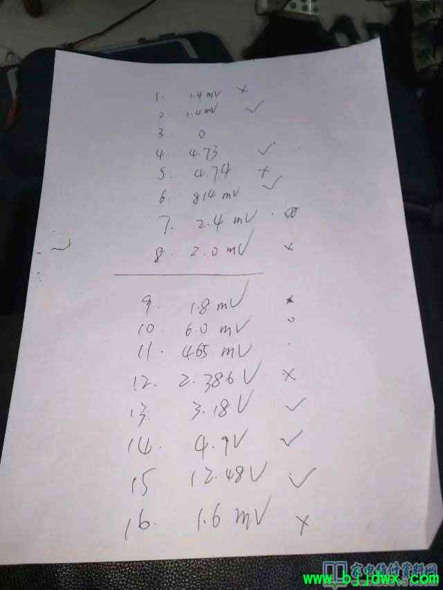 在线测量,电阻达到了31欧姆,将其拆下,OZ9976的15脚供电电压立刻恢复到12V ,以为故障就此排除,却发现高压还是没有,然后把芯片所有的脚电压都测了,看看有没有保护。