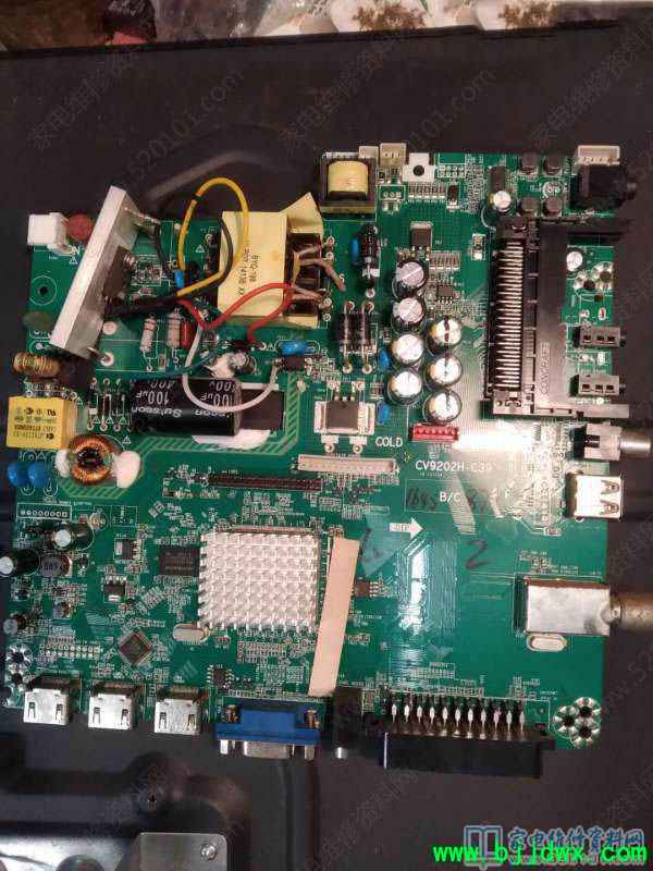 第二天,用户拿回来说是没有图像。我一试,HDMI没有图像,电视也调不出台,只有VGA可用。刷了数据故障依旧,判断是硬件问题。与用户协商需要换通用三合一主板,用户同意。