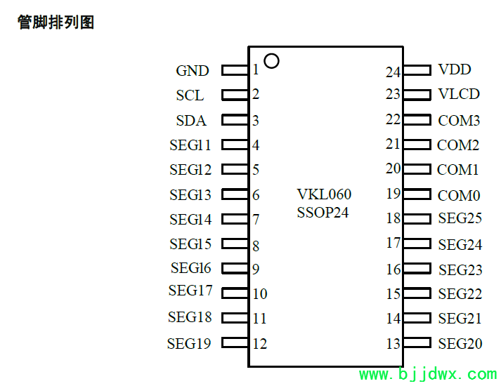 VKL060 SSOP24 I2C接口超低功耗低休眠电流LCD液晶显示驱动器:
