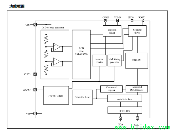 ★ 液晶驱动输出: Common 输出4线;Segment 输出15线