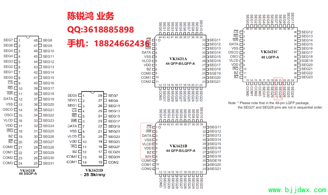VK1621 2.4V~5.2V 32*4 32*3 32*2 偏置电压1/2 1/3 LQFP44/48/SSOP48/SKY28/DICE裸片