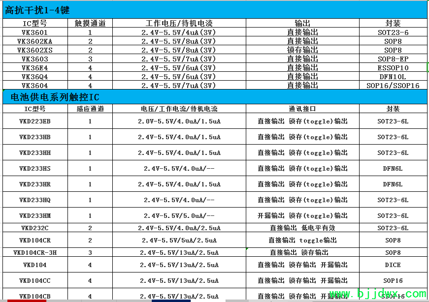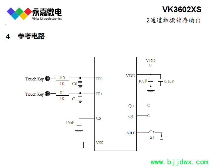 VK3602XS应用于大小家电娱乐产品等锁存输出高抗干扰2键触摸检测芯片选型资料: