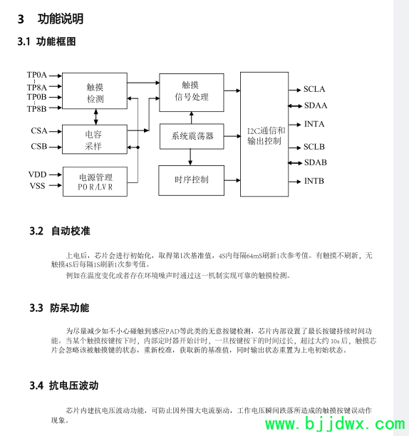 • 上电后4S内自校准周期为64mS4S无触摸后自校准周期为1S