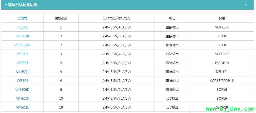 智能门锁/温控器/数字键盘VK3618I高抗干扰超低功耗多键触摸18通道18键触摸检测芯片: