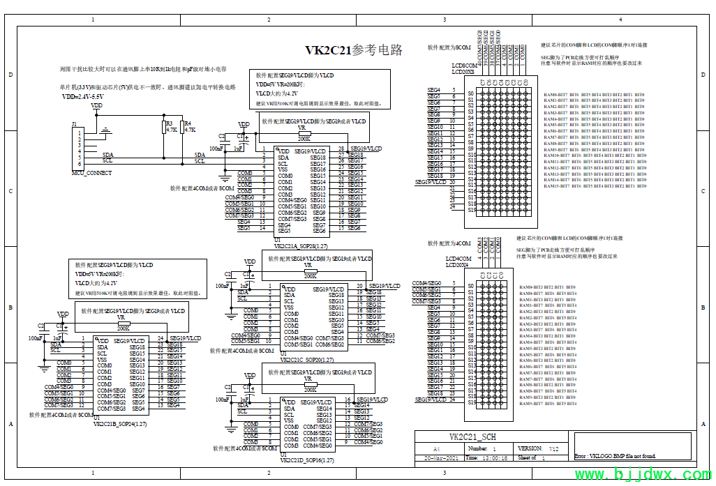 VK2C21A  2.4~5.5V  20seg*4com16*8         偏置电压1/31/4   I2C通讯接口    SOP-28