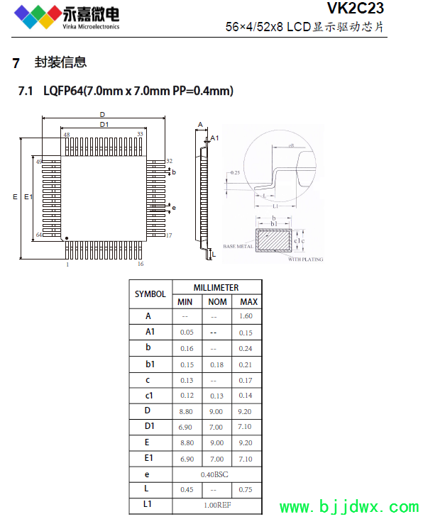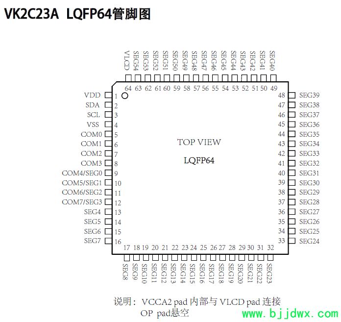 VK2C23A  LQFP64: 56SEG×4COM或52SEG×8COM点阵