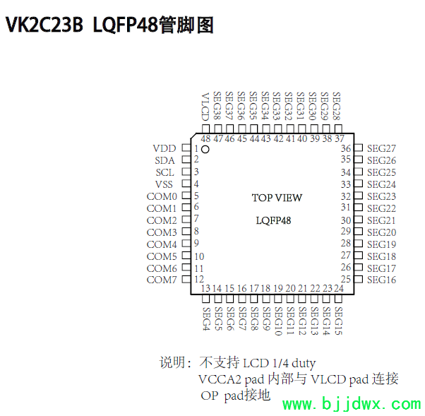 VK2C23B  LQFP48: 36SEG×8COM点阵