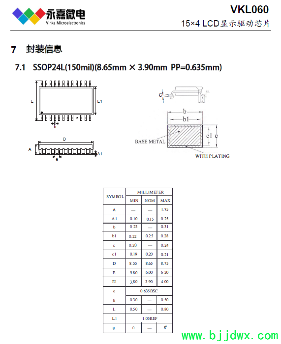 VKL060 SSOP24超低功耗低工作电流 段码LCD液晶驱动IC 永嘉原厂FAE支持: