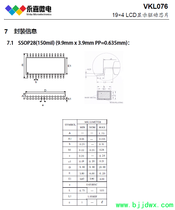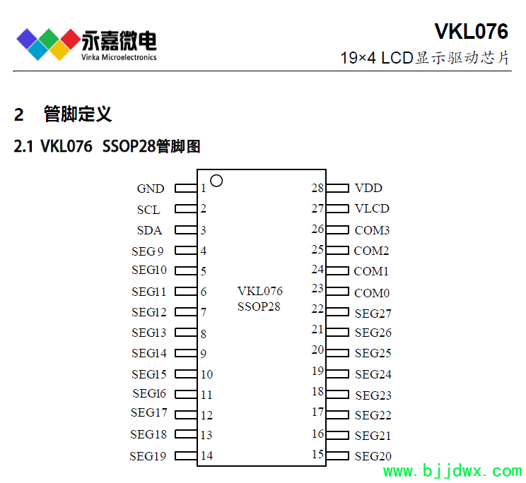 19*4段LCD液晶驱动IC-VKL076 SSOP28 超低功耗/省电,适用于分贝仪/测光仪:
