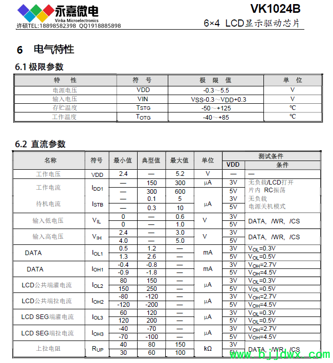 VK1024B  2.4V~5.2V   6seg*4com  6*3  6*2    偏置电压1/2 1/3   S0P16  省电模式