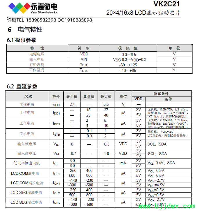 VK2C21A  2.4~5.5V  20seg*4com 16*8  偏置电压1/31/4  I2C通讯接口   SOP28:    DICE/DIE裸片(绑定COB);COG(绑定玻璃)    高抗干扰/抗噪/低功耗