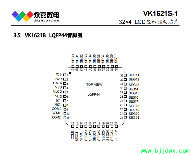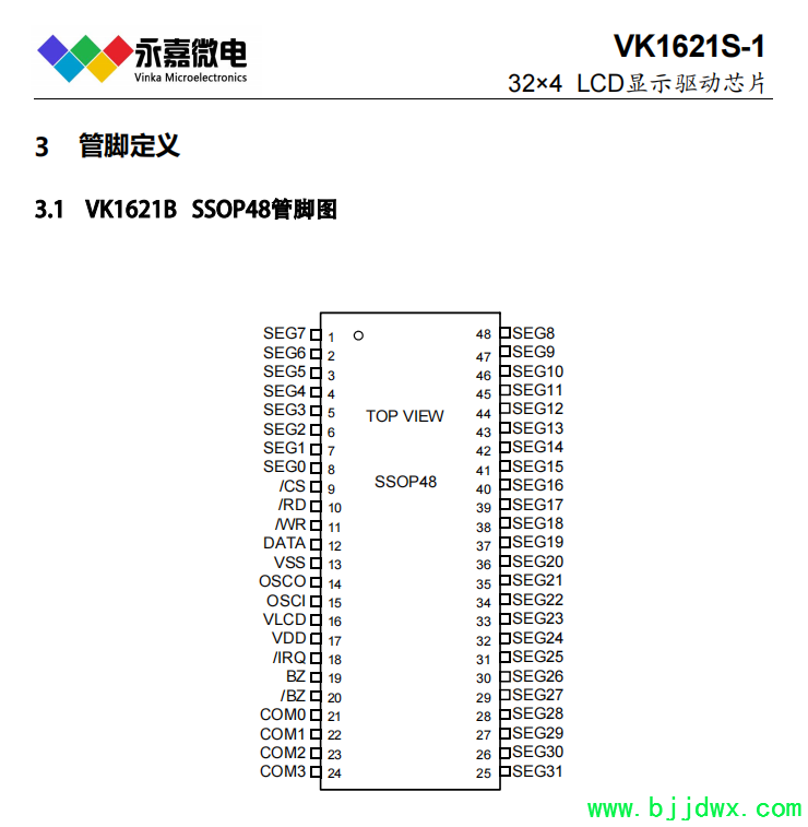 VK1621 2.4V~5.2V 32seg×4com 32×3 32×2 偏置电压1/2 1/3 LQFP44(QFP44正方形)/LQFP48/SSOP48/SDIP28;DICE/DIE (绑定COB);COG(绑定玻璃) 省电模式