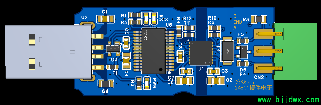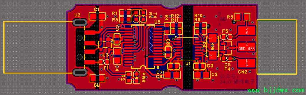 然后是PCB部分,连连看,连接座子就照抄微雪的RS485模块吧: