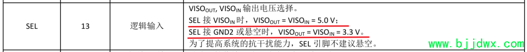 然后这个CA-IS2092A就和常规的RS485芯片一个用法,就是DI,使能和RO三个地方,然后隔离侧输出电平可以通过SEL管脚去配置,可以配置输出电平为3.3V或者是5V(我画的图输出是3.3V):