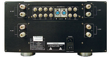 功率在8欧时可达200W,纯甲类功率为足足的100W!用料方面。该机在信号通道方面全部选用了极品级的MKP音响专用电容,电阻全选用军品级名牌五色环金属膜电阻,两只长期功率输出高达2X700W的巨型环牛和12只总容量高达12万微法的极品红宝石电解确保了该机充沛的功率输出,能在4欧时达到400W!是国内极少见到的优秀大功率HI-END甲类功放之一!外观高大威猛端庄典雅也是国内音响业界极少见到的靓机!