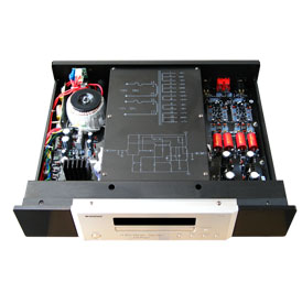 该CD播放机是该公司集十余年铸造HI-FI音响的功力与心得精心铸造的高保真独立元件场效应管输出CD机。本机可播放CD、HDCD和MP3等多种格式的碟片,并有精细的液晶点阵屏作出相应的解码显示。机内采用时下被音响界公认最靓声的美国Analog Devices公司的AD1955立体声24bit/384KHz多比特∑△D/A转换器:该芯片可令背景噪声极小,动态范围极大,失真度小于-110db: