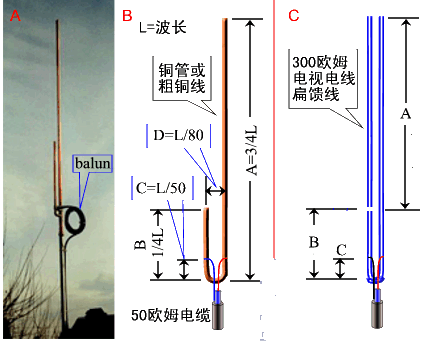 J型天线因制作简单,取材容易,一直受调频发射机爱好者青睐,制作时可以选用1 mm左右的空调铜管,按照计算的尺寸制作,无需专业工具制作就能获很好的效果。如找不到铜管,亦可以用2.5平方的铜线制作。