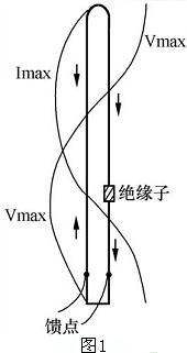 笔者前不久自制了一架J型折合半波天线,使用效果非常理想,现将该天线的制作介绍如下。 这是一种垂直极化的全向天线。只要按相应波长选取天线尺寸,即可用于高频式超高频波段。由于这种天线的低仰角辐射特性好,对于主要依靠低仰角传播进行的通信,它的实际辐射效率要比一般的地网天线高出50%。这种天线的物理长度不超过3/4波长,对于较高频段,可算是一种小巧的天线。在天线的底座附近,通过一段J型匹配短截线进行馈电,可以克服由于馈线与天线的相互作用带来的许多问题。天线的馈电阻抗约为50 Ω。 一般地网天线的增益要比半波偶极天线高3dB。通常,所用的5/8波长地网天线也有较高的增益,但J型折合半波天线比这两种天线有更高的辐射效率。它的全辐射角几乎与地面平行,最大辐射仰角正好处在移动通信所需的仰角位置。 J型折合半波天线实际上是一种垂直架设的端馈式折合偶极天线。天线上电压和电流的分压见图1,天线下部的1/4波长匹配短截线,使天线的输入阻抗可以低到只有50 Ω。在短截线的另一端,向天线部分馈电的阻抗却很高,这正好满足了半波天线端点高阻输入的要求,从而解决了匹配的问题。和所有折合振子一样,在天线两臂上的电流同相,而在短截线上反相,所以在短截线上不向外辐射能量,有助于降低天线主辐射仰角。只要匹配好,可使电压驻波比低于1.5,甚至可以达到1。该天线可在固定台站使用,也可在移动台站使用。