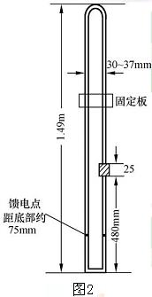 这种天线可以用直径6~9mm的铝管制作,两平行单元之间的间隔要求并不严格,偏差不超过6mm便可。馈电点处必须用塑料盒封装(防水),折叠式辐射单元的折回部分与匹配短截线短截臂的顶部之间,必须有良好的绝缘。 如何找准馈电点是天线设计的一个重要问题,可将馈电点在天线管上上下移动,测得电压驻波比最小的点便是馈电点,然后将馈线焊好,图2中给出了笔者做的一副145MHz天线的设计数据,这种天线室内室外都可使用,但要尽量避开其他导体。