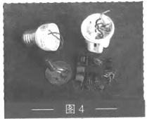 改造之前要用电烙铁把荧光管灯头、镇流器线路板、带螺纹扣的灯座分开,并将电子镇流器上多余的元器件一一焊下来,只留下1个电解电容和5个二极管备用,如图4所示。