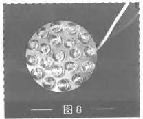 首先把20个高亮LED插到PCB板上并贴紧、焊好,如图7图8所示。