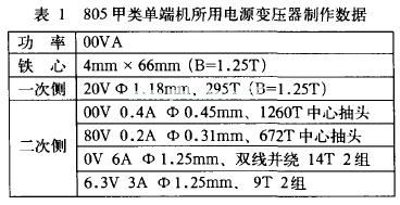 上述两例分别为10kΩ输出变压器和5kΩ输出变压器的应用典型,各有千秋。从推动轻松、输出功率大、+10V栅偏压容易获得和充分利用805管的高耐压考虑,本机选用了前者。从前述两例计算可以看出乙类功率管作甲类单端输出使用时,效率高于甲类专用三极功率管,推动灵敏度也高,仅47V峰值。