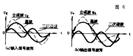 图6相位失真(a)是输入信号波形,图6(b)是输出信号波形。输入时,信号中的基波和二次谐波相位都从零开始,但输出时相位关系发生了变化,二次谐波产生了相移,所以合成波形与原来的不一样了,这就产生了相位失真。解决的办法:与频率失真的解决办法基本一样。