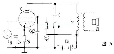 当放大器有了比较严重的频率失真时,放大后的语言将会模糊不清,如果语言中低频部分不能得到很好的放大,那么声音就变得尖锐刺耳,很不耐听。为了克服上述缺点,通常用一个RC电路并联在输出变压器初级端,如图5所示,使放大器总的负载阻抗尽可能不随频率变化而变化。