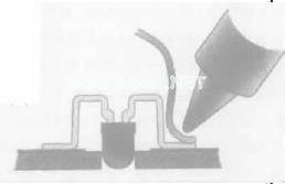 除双列直插式IC外.还有少数元件(如晶体和水银倾斜式开关等)采用的是普通引脚,为了使它们不致穿过电路板来进行焊接,对这些元件也要进行表面安装式焊接,即将它们的引脚剪短并打弯90°再贴焊在电路板上,但要注意,不要将它们的引脚留得过短而不便于焊接。