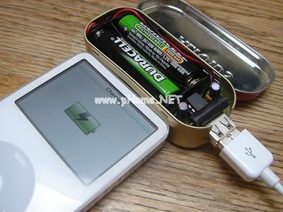 充电电路和两节电池可以正好放进一个小糖盒,并且可以让你的ipod运行好几个小时!是9V USB充电器的2.5倍多!(参考 过程 中的数学/计算)你也可以用充电电池。