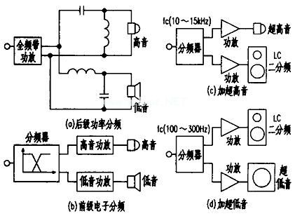 在现有的系统上加一台超低音箱,分频点即选为100~300Hz.并尽可能低一些(见图8d)。超低音箱可用市售的商品箱.此时就无须低音功放:也可使用大口径低音单元自制,但需要配一台低音功放。