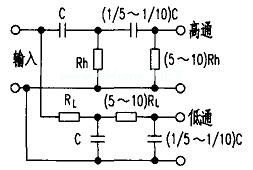 具体一点说,对于高通滤波器(见图2),后级的R值应取为前级Rh的5~10倍。与此同时后级的C值则按相应在比例减小,即取前级C值的1/5~1/10。同理,对低通滤波器,后级的R值取前级RL值的5~10倍,C值则取前级C值的1/5~1/10。计算公式fc=159/RC则不变。