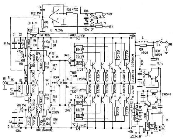 1.本功放参考日本金嗓子的电流负反馈电路(日本金嗓子功放多数采用电流负反馈电路),电流负反馈放大器可以很好地兼顾非线性失真与瞬态互调失真这两项指标,而且转换速率比电压负反馈放大器好,可以提供理想的放大效果。