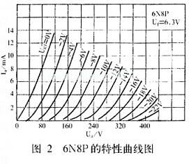 6N8P的电气参数和性能均较适合为本机电压放大级的放大管,6N8P电气参数见表1,其特性曲线如图2所示。6N8P的国外型号为6H8C(前苏联OTK产)、6SN7GT、6F8G、CVl81、QB65 (欧美型号)。