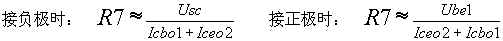 下面谈谈各元件的选取原则。前面已经提到,Rc是放大级的负载电阻,又相当于调整管的偏置电阻。Rc大,放大倍数大,有利于提高稳压器指标,但Rc过大会使BG2 和调整管电流太小,限制了负载电流和调整范围。通常Rc根据下列公式选取: