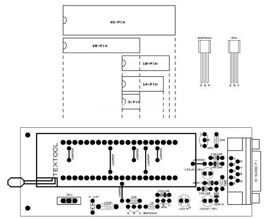 2.这个PIC烧写器的VPP必须在烧8-18PIN和28-40PIN时通过一个开关切换,如果您在烧写时没有正确地选择好开关的位置,过电压可能将您的PIC烧坏。