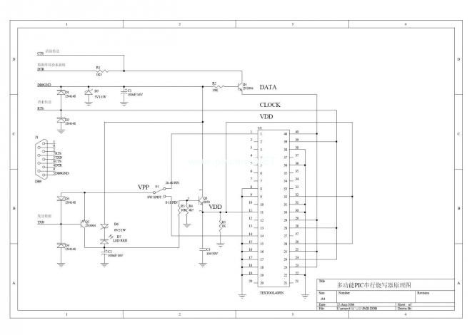 1.串口的地线 直接与烧写器的VDD相连,电路图中所有的接地符号均是PIC烧写器的地,请不要将串口的地与烧写器的地相连。(我一年前做过一个没成功,因为当时没搞清,误将串口的地和烧写器的地相连)