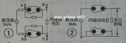 检测方法见图2。考虑到简单易制,信号源采用了5kHz的正弦波,且不用单片机、数字显示等,同时考虑到同一个人使用,只要了解自身体脂肪的变化情况就可以了,因而也未考虑人的的身高、体重对检测的影响。图3是制作的全电路。
