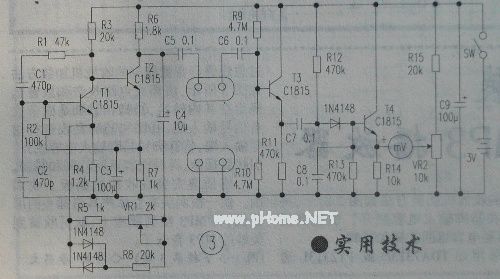 先确认振荡器工作正常。用音频信号传输线从将C1输出端及地端连接至立体声放大器,若振荡正常,可从喇叭听到音频声;调整VR1可听出频率的变化。