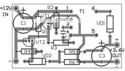 VT1要求Icm>0.5A,hEF为50-100,可用2SC2500、2SC1008等,VD1为稳压值为3V的稳压二极管。