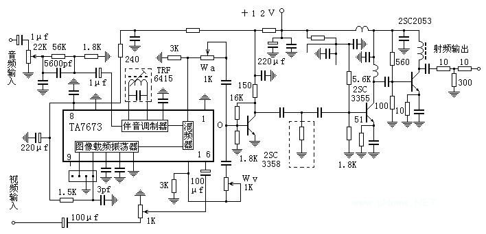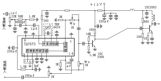 根据经验,假如你做的是低频道,如1-频道或2频道,调试到此也就基本上结束了,一个2SC3358推动发射管总增益足够,因为发射管2053在1-2频道的增益也很高,做好了能在30分贝左右,3358则近40分贝,在此频段增益不是问题,难点是防止自激。防自激的主要手段是衰减信号,降低增益。