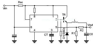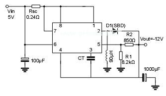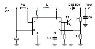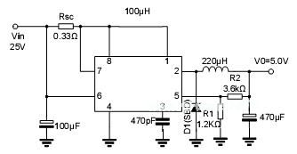 电流限制SI检测端(5脚)通过检测连接在V+和5脚之间的电阻上的压降来完成功能。当检测到电阻上的电压接近超过300mV时,电流限制电流开始工作。这时通过CT管脚(3脚)对定时电容进行快速充电,以减少充电时间和输出开关管的导通时间,结果是使得输出开关管的关闭时间延长。