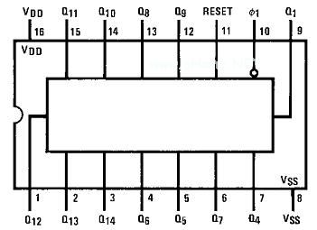 CD4040集成电路各脚功能。