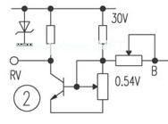 图1是收音自动搜索调谐电位器。Q1、Q2组成2~4kHz左右振荡电路。Q3阻止振荡。A端接调谐指示输出脚,CXA1019、CXA1283等收音电路调谐指示脚都是收到电台输出负电压,Q3接收负极电压使Q1停振。B保持电位不变,按一下K1搜索下个电台,B电压上升,收到电台Q3阻止振荡,B端电压停止上升,再按再往下搜台……B端搜台从0V升到5V,跳回0V再按0~5V循环搜台,K1用于计数清0,如要跳回低频电台搜索时按K2。B端接收音调谐电路变容管,此电路接通,如A端没有负电就会从0~5V循环搜台,只要收音机收到电台时调谐指示脚输出负电压即停搜。如有12位、16位或更多位的串级二进/退的计数电路就更好,可惜找不到或是目前根本没有厂商生产这类多位进退计数电路。